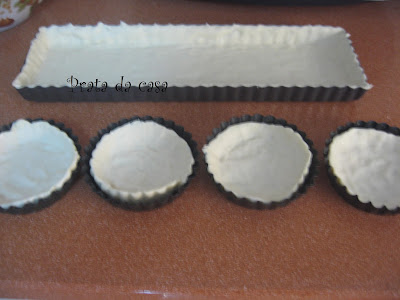 Forre as formas untadas com a massa folhada.Reserve enquanto prepara o recheio.