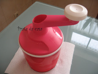 No título desta receita falo numa "parceria". Foi ideia da minha amiga Manuela Macedo, que sendo uma fã incondicional dos produtos Tupperware, me fez a proposta. Não há quem não conheça a Tupperware. É uma marca de reconhecida fama, quer pela qualidade dos seus produtos, quer pela versatilidade dos mesmos. Penso que não deverá existir casa onde não haja pelo menos um produto desta marca. Aqui no blog, já tenho feito referência a alguns produtos que utilizo na minha cozinha. Na receita de hoje utilizei o Speedy Chef para bater as claras e para o merengue. Prática como sou, este pequeno aparelho encheu-me as medidas, pois em menos de um minuto, consegui claras em castelo e perfeitas!!
