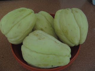 As caiotas, como são conhecidas aqui nos Açores ( ou chuchu) são vegetais da categoria dos frutos. De fácil digestão, ricas em fibras e pobres em calorias, são ótimas para um regime alimentar saudável. Fiz as minhas recheadas com carne moída .