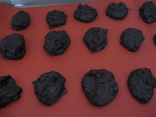 Com uma colher de sopa , retiram-se pedaços da massa e envolvem-se em farinha ( como já disse, a massa é pegajosa). Dispõem-se em tabuleiros protegidos com tapete de silicone e levam-se ao forno pré-aquecido a 200º durante 15 minutos.
