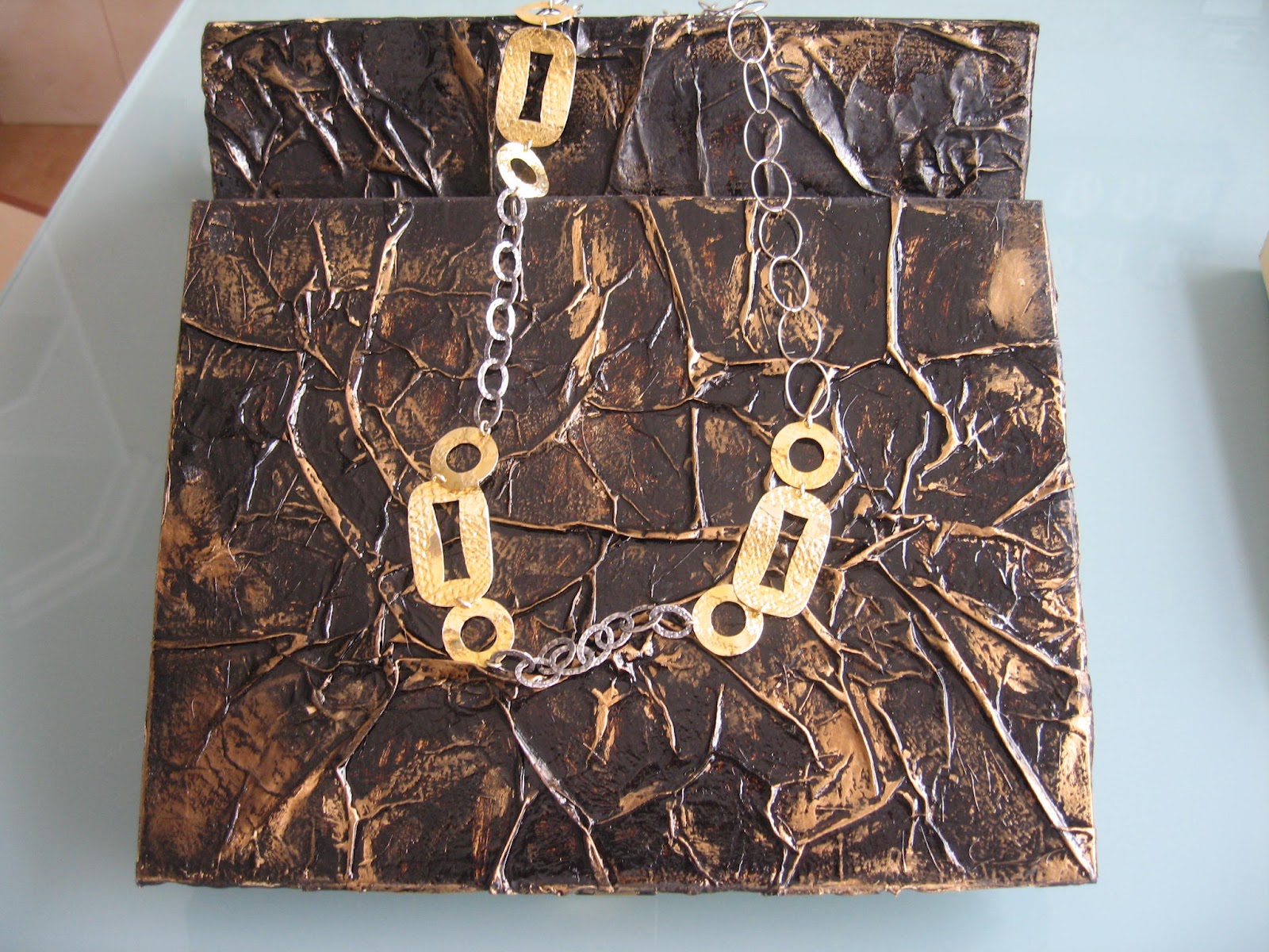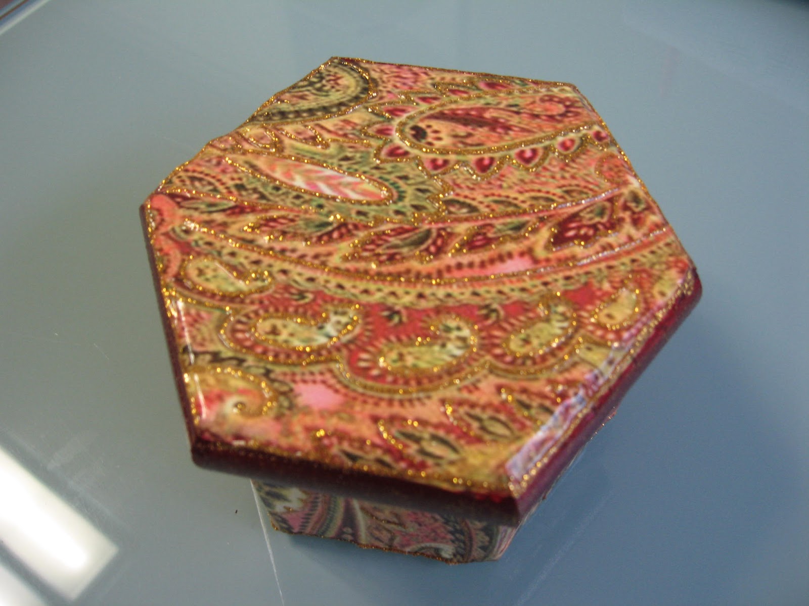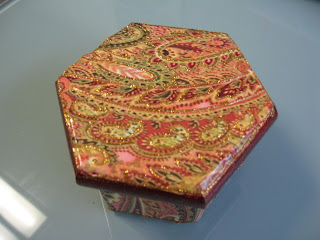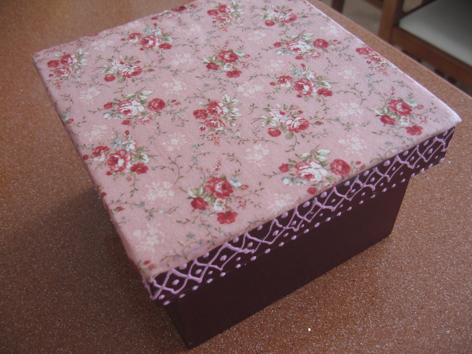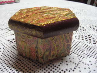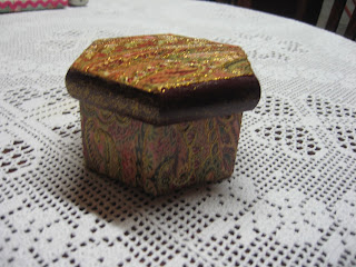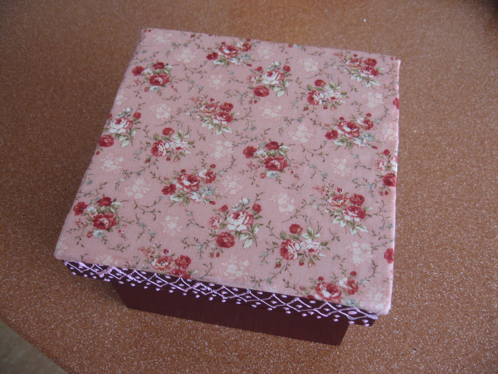 Fiz esta caixa de chá para oferecer pela Páscoa à minha mãe.Claro que tive, de novo, a orientação preciosa da D. Eugénia, no atelier onde aprendo estas novidades!