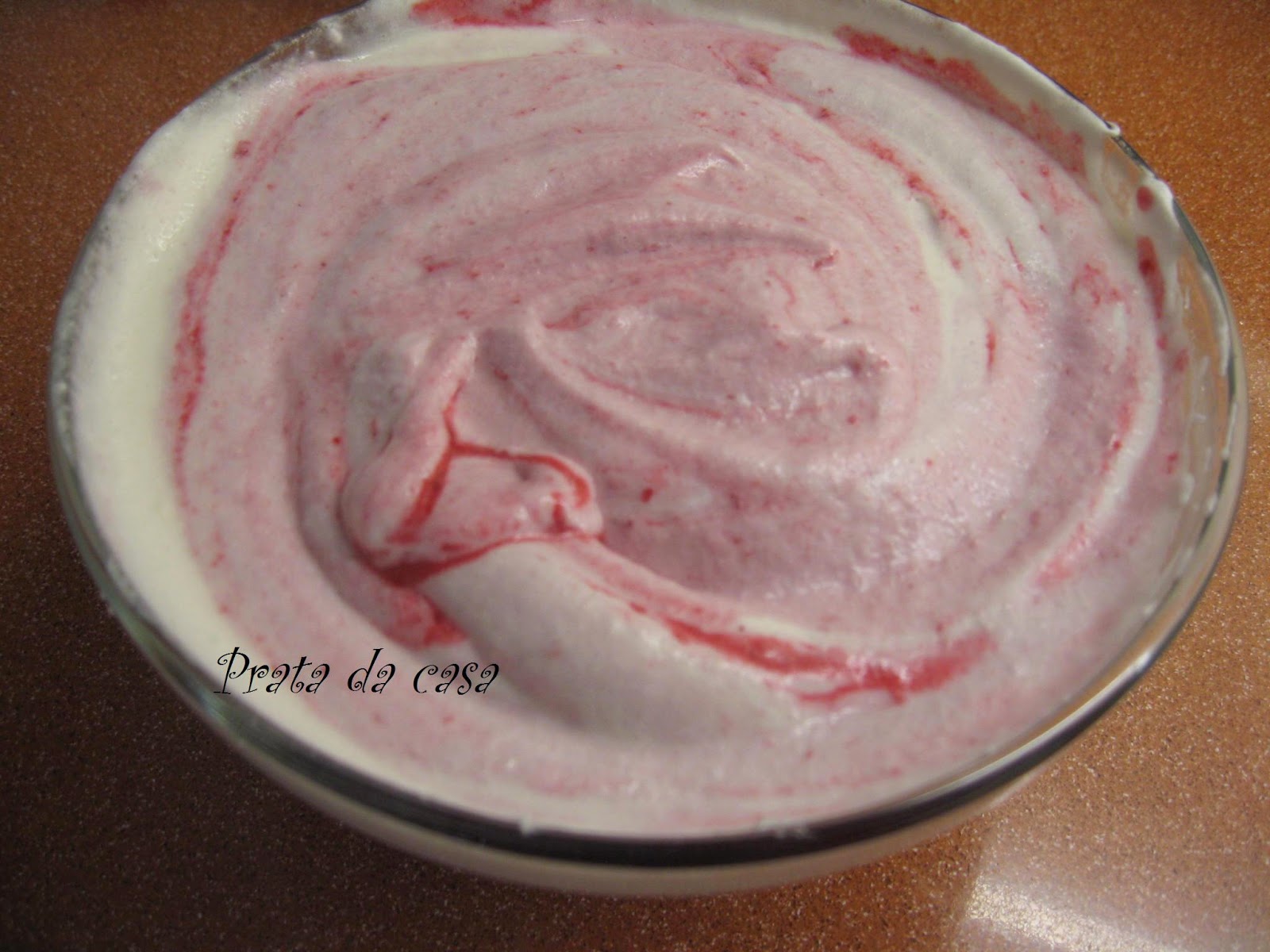 - Combinar o açúcar, Maizena e o sal. Juntar os frutos vermelhos e deixar ferver, mexendo sempre, durante 2 minutos ou até que engrosse. Retirar do lume e adicionar a essência de amêndoa. Vazar esta mistura na massa.