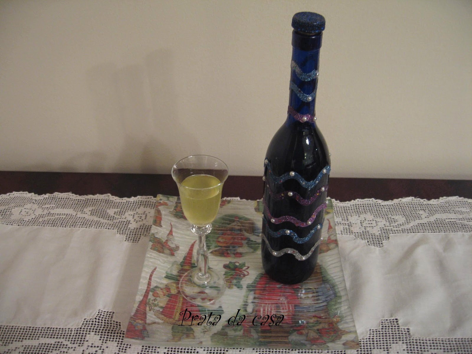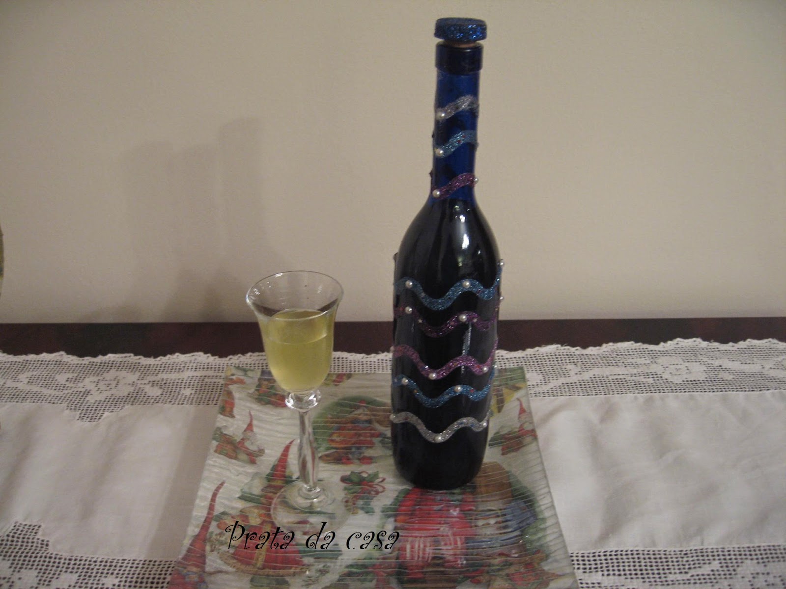 Guardei nesta garrafa que reciclei com motivos de Natal. Agora é só deixar repousar e servir pelo Natal a familiares e amigos.