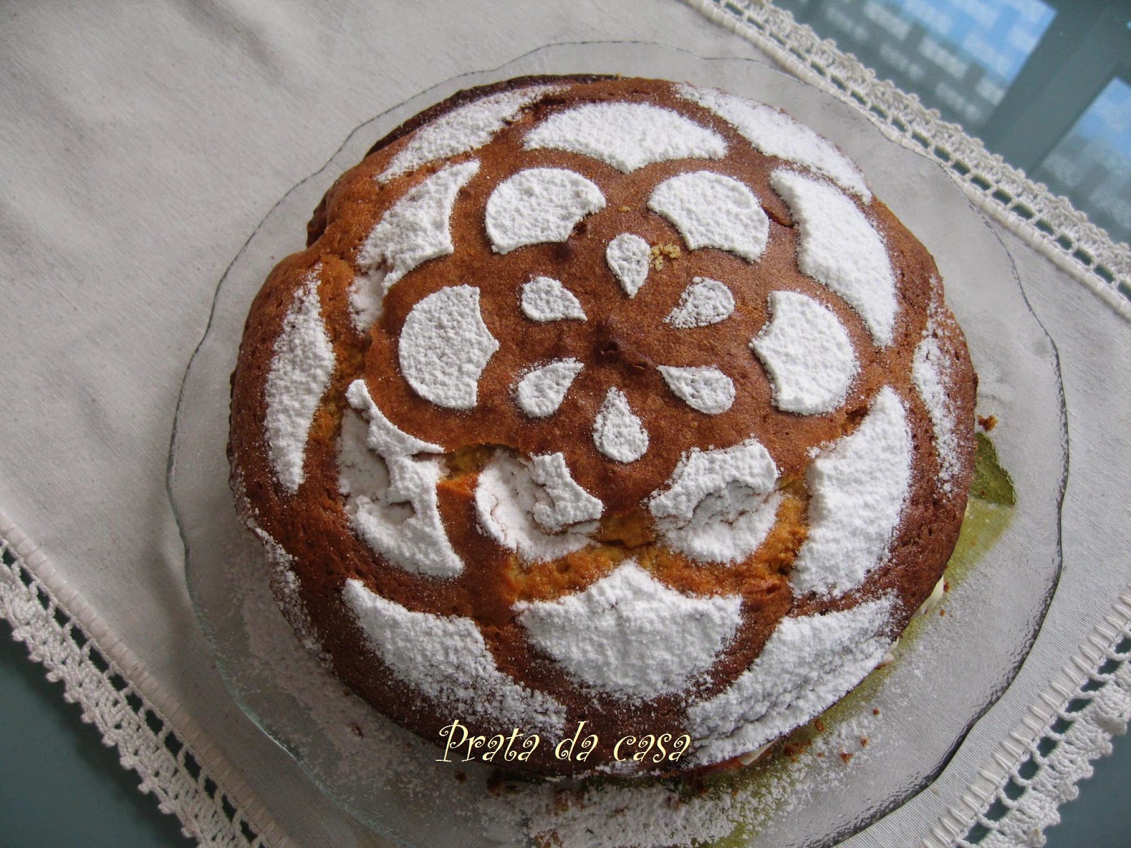 Polvilhar de novo com açúcar e canela. Levar ao forno pré-aquecido a 180º durante 40 minutos.